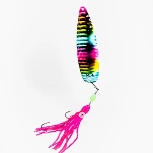M3 Tackle Rigged M3 Spoons are available in two sizes. Choose from 4 3/4″ and 5 1/2″. They come in five great colors: Cotton Candy, Flash bait, Fire Candy, KW Mack and Nuclear. Go catch some fluke!