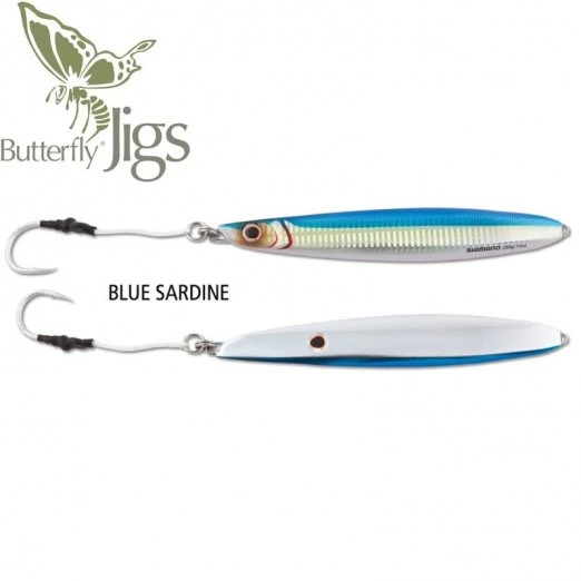 The 2016 Shimano Butterfly Flat-Side Jigs are available in six sizes/weights and eight awesome colors. There are even a few models with glow in the dark finishes. They come rigged. The 112g and 140g models have a 5/0 hook. The 160g and 224g models have a 7/0 hook. The 280g and 325g models have an 8/0 hook.